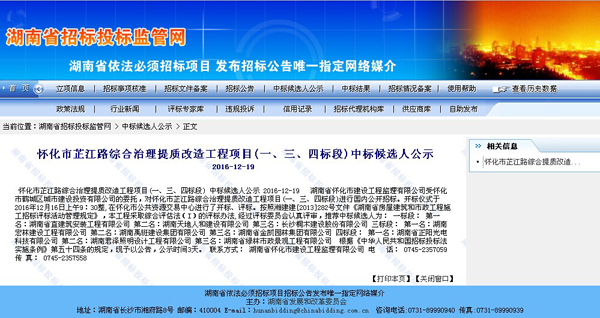 2016年12月19日,湖南省正陽光電科技有限公司成功中標懷化市芷江路綜合治理體質(zhì)改造工程項目(四標段)。