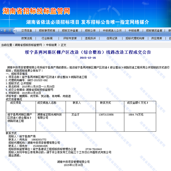 2015年12月16日,我公司成功中標(biāo)綏寧縣棚戶區(qū)改造(綜合整治)線路改造工程!  查看詳情