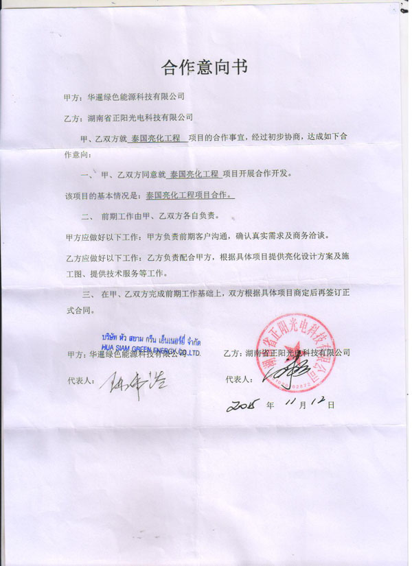 2015年11月12日,我公司成功拓開泰國市場,與客戶簽訂《合作意向書》!  查看詳情